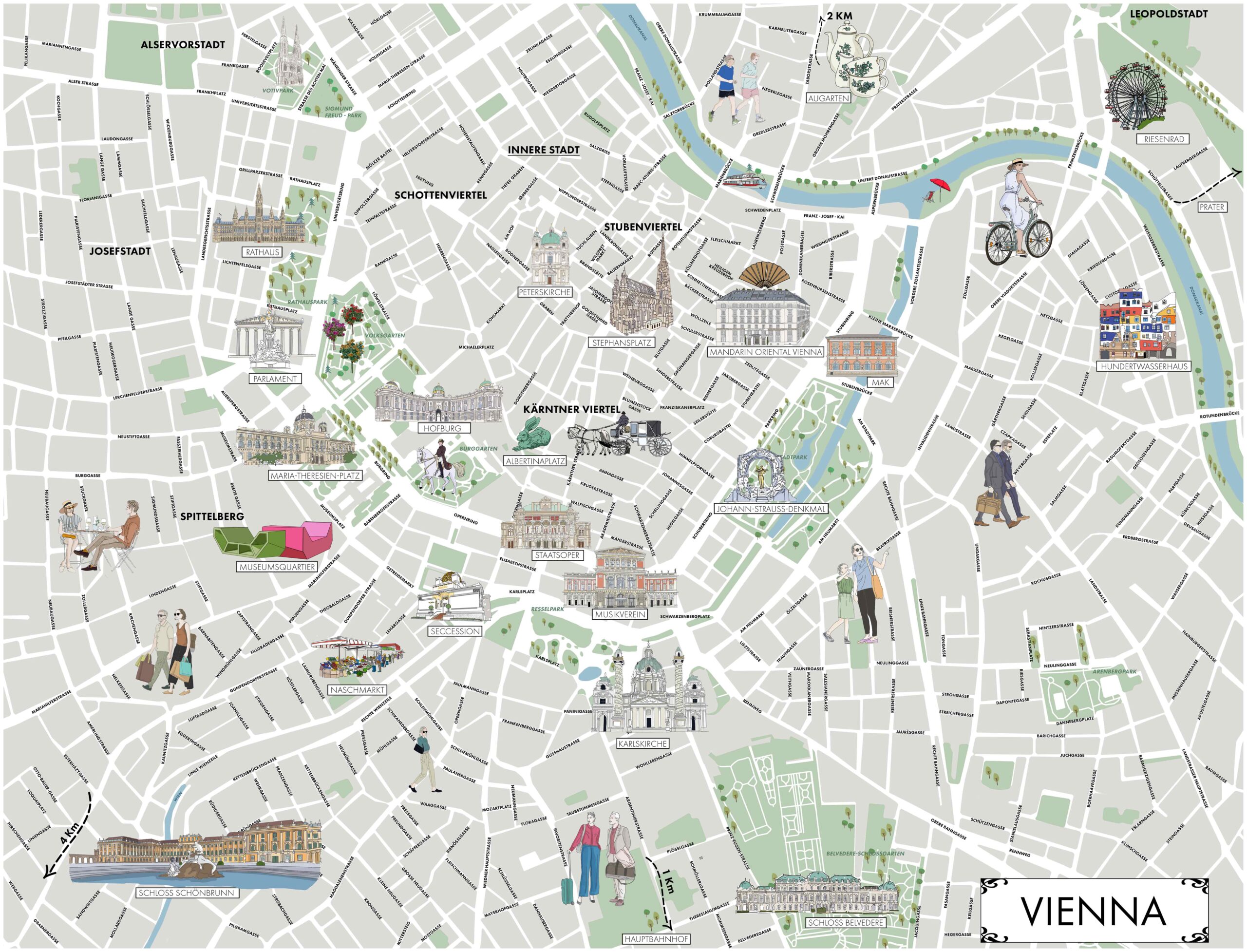 Eine elegante CityMap bekommt man im Mandarin Oriental Vienna Hotel.